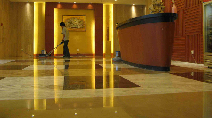 1)起蠟清洗:用起蠟水,配清洗機對地面進行起蠟刷洗,將表面徹底清洗干凈;
