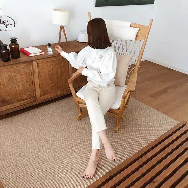 他們家住在這個韓式小平房里。冬天的時候,客廳的地板都鋪上了毛茸茸的地毯,不僅踩著舒適,冬天的時候還能起到保暖作用,這個地方既能休息還能做在地板上辦公。