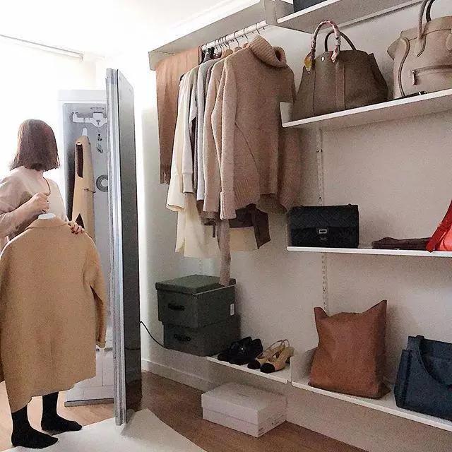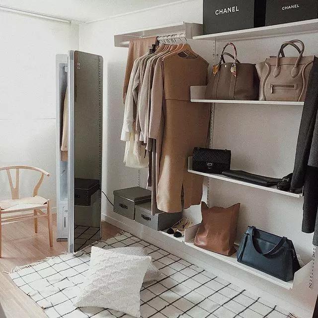 家里還有專門的衣帽間,男女主人的衣物分開存放。這個簡單精致的家,真的非常讓人艷羨了!