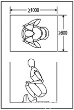 (1) 蹲式馬桶的安裝,應于水電配管及樓板施工前預作安排,而其周圍空間之安排應大于下圖所示之尺寸,以利使用,其余尺寸請參閱各項產品尺寸圖。