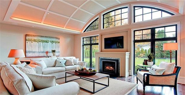 根據你的壁爐的位置,你可能會考慮把你的電視放在上面,以獲得更大的感覺。擁有那種擴張的感覺會立刻讓房間變得更大、更受歡迎。