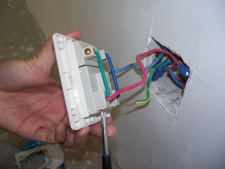 按接線要求,將盒內甩出的導線與開關、插座的面板連接好,將開關或插座推入盒內(如果盒子較深,大于2.5m時,應加裝套盒),對正盒眼,用機螺絲固定牢固。固定時要使面板端正,并與墻面平齊。