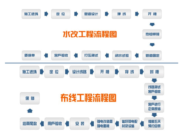 在做水路改造的時候,所使用的材料一定要符合國家標準(國家禁止使用鍍鋅管和UPVC管)作為水路改造材料,在施工的時候堅持走頂不走地的原則,出水口的位置一定保持水平,管路的鋪設一定要做到橫平豎直的原則,布局和走向都需要遵循安全合理的原則。各類門閥需要正確安裝,便于日后的使用和維護。