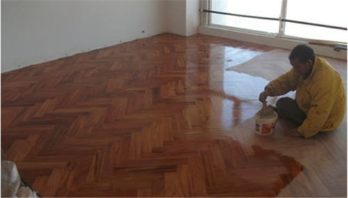 底漆干了之后再刷面漆,最后還要用水砂紙仔細研磨,將地板面層磨至略感粗糙,除去粉屑再刷第二層面漆。
