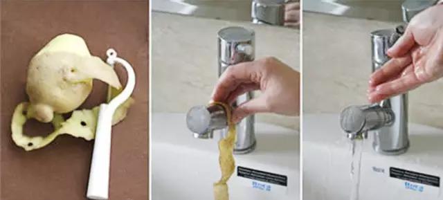 用削下來的土豆皮(肉的那一面),反復(fù)擦拭水龍頭的表面,然后用清水將水龍頭清洗干凈。真的是好用到醉了……