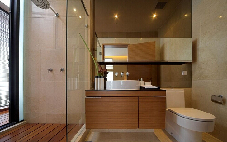 木質(zhì)的浴室柜吸水容易變形,所以它對周圍環(huán)境有非常苛刻的要求,而普通家庭的浴室一般只有幾平方米的空間,不容易做到干濕分區(qū)。在選購浴室柜時,可以采用防火板、耐磨板,高分子聚合物等復合型板材作為柜面材料,它們不但具有很好的防潮性,還能模擬出實木的顏色。