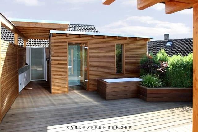 你曾經夢想過擁有自己的水療浴缸嗎?在露臺上安裝起室外按摩浴缸,全年都可以來此享受舒適泡澡。如果再加裝屋頂遮覆,不分晴雨天都可盡情享受喔!