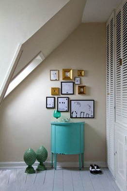 ??? 白色的墻面和木柜,再搭配上白色的木地板是不是聽起來(lái)有些不可思議。但是主人加上了滿墻錯(cuò)落有致的插畫以及色彩鮮亮的翻新木柜,頓時(shí)讓空間充滿了新穎的感覺(jué)。