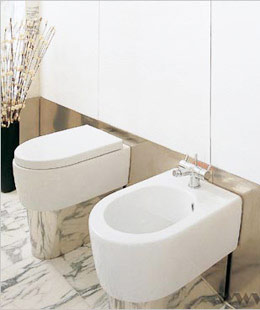 ??? 墻上,一小段通水管道直接把水引導(dǎo)到位于下方的洗面盆中,水龍頭是獨立的,洗面盆也是獨立的。洗面盆不需要考慮與水龍頭的內(nèi)部結(jié)合,因此在造型上有了更多自由的選擇,讓不同的空間、環(huán)境有了更多樣化的選擇。而且,洗面盆和水龍頭交接處的位置,通常是水銹產(chǎn)生和細(xì)菌滋生的最佳''溫床'',而各自獨立的水龍頭和洗面盆,就不必為這些位置的清潔而煩憂了。