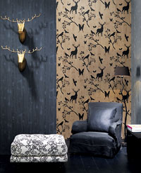 ??? “斑馬、蟒蛇、大象、長頸鹿……這些野生動物在意大利設計師的“本源2012-動物條紋”系列壁紙中躍然而出,為居室打造出狂野而奢華、妖嬈而不失高貴的獨特氛圍。大象皮紋的粗獷、觸感細膩,有著回歸原生態的意味;長頸鹿斑紋雖由不規則塊狀圖案所組成,但干凈的紋飾始終掩飾不住鹿兒身上特有的優雅、純凈氣質。在撲面而來的動物世界中,我們嗅到了自然主義的味道。
