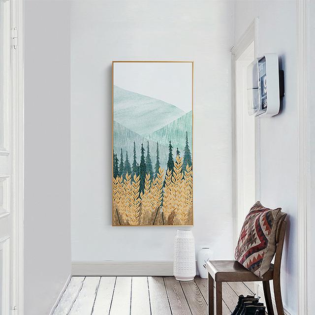 抽象藝術感的這種草原風景圖案的壁畫,很適合比較偏清新簡約風格的玄關進行裝飾,搭配原木色的畫框看起來也是十分的素雅,裝飾這種北歐風格的玄關看起來真是漂亮,營造出的視覺場景也是相當的驚艷。