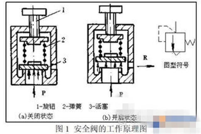 當系統壓力超過規定值時,安全閥汀開,將系統中的一部分氣體排入大氣,使系統壓力不超過允許值,從而保證系統不因壓力過高而發生事故。安全閥又稱溢流閥。圖示為安全閥的幾種典型結構形式。圖a為活塞式安全閥,閥芯是一平板。氣源壓力作用在活塞A上,當壓力超過由彈簧力確定的安全值時,活塞A被頂開,一部分壓縮空氣即從閥口排入大氣;當氣源壓力低于安全值時,彈簧驅動活塞下移,關閉閥口。