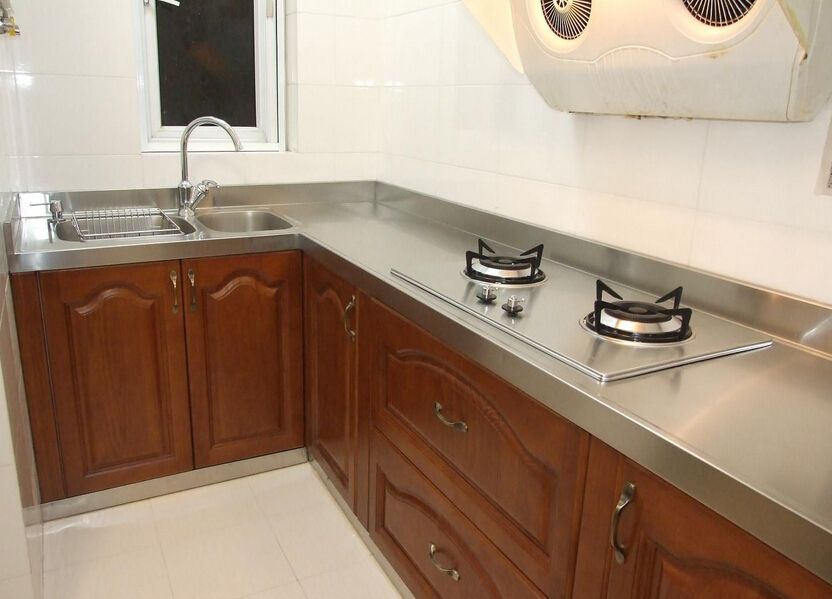 1、不銹鋼櫥柜臺(tái)面是一體的,永遠(yuǎn)不會(huì)開裂;