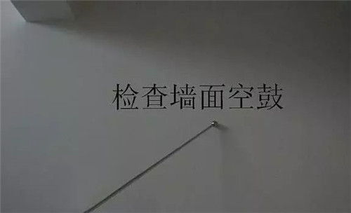 9、檢查墻面是否空鼓,用小錘輕輕敲擊墻面,如果聲音很空,就證明有空鼓現象。