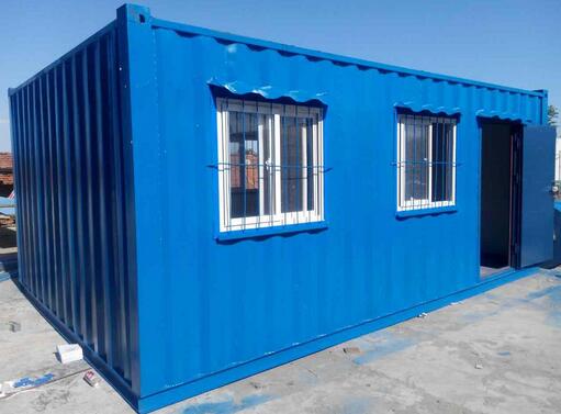 配置:一扇防盜門(2050*900),兩扇防盜窗(1200*1000)加防盜欄,夾芯板裝修(50mm),地板為:PVC(9mm)或者復(fù)合地板,5組插座,1組空調(diào)專用插座,一個(gè)排氣扇(30*30),一個(gè)配電柜,外部做海藍(lán)色油漆等,這個(gè)是標(biāo)準(zhǔn)裝修。
