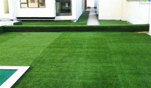 假草坪是以仿草葉狀的合成纖維,植入在機(jī)織的基布,背面涂上起固定作用的涂層以作運(yùn)動(dòng)場(chǎng)上、庭園地坪和綠化地面上作人造草坪。