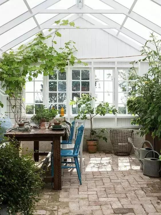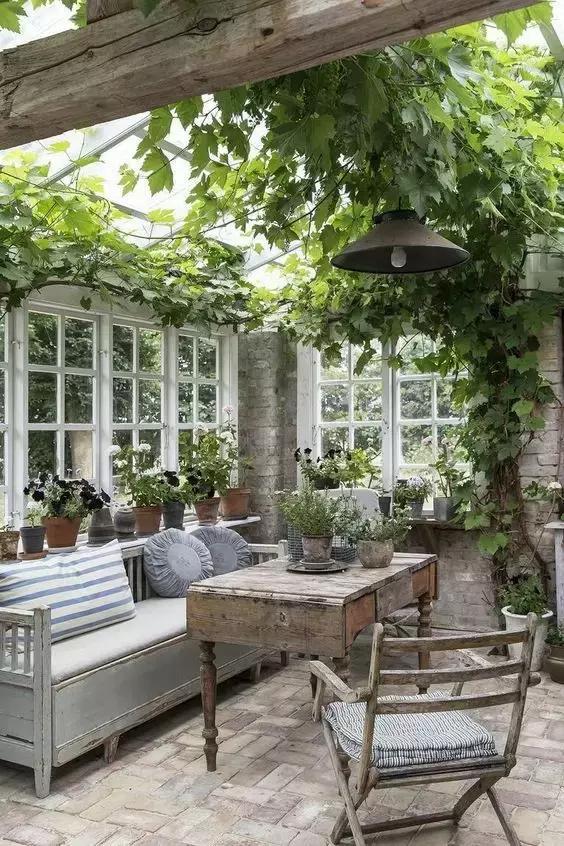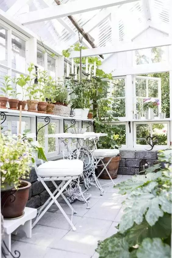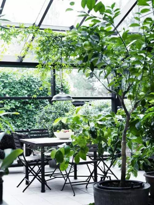 陽光房內種植攀爬植物也是一個不錯的降溫方法,攀爬的植物形成綠色簾幕,遮擋著烈日直射,起到隔熱降溫的作用,讓陽光房在夏日里形成清涼的小環境。