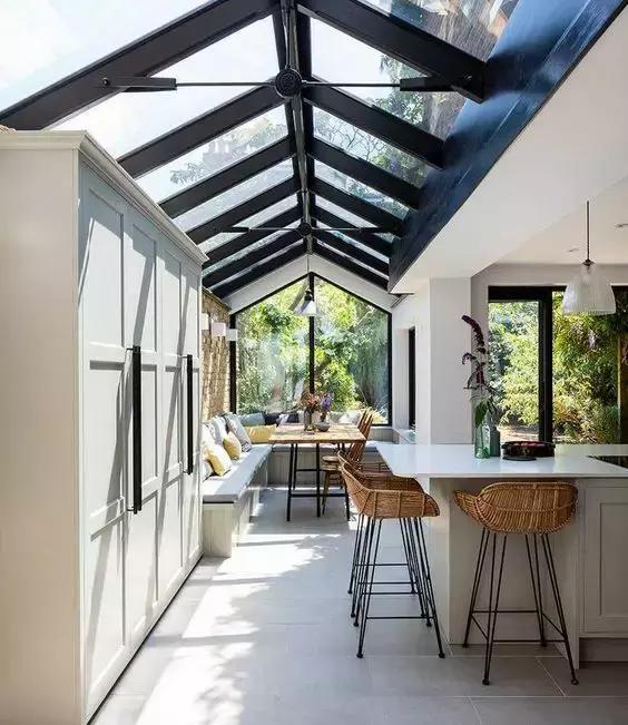 陽光房變餐廳,邊吃飯邊欣賞美景,想想都會食欲大增,在工作之余約三五好友吃飯聊天豈不美哉!