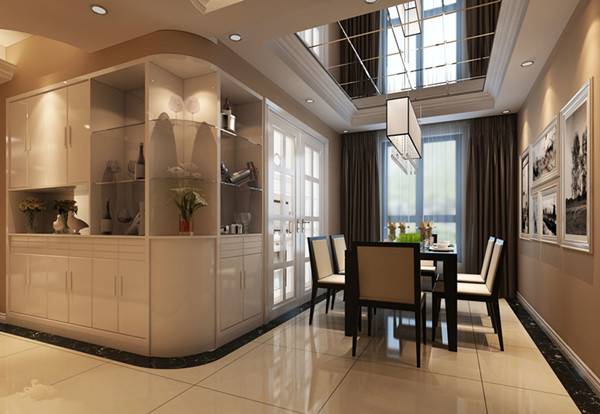 客廳到餐廳之間一般情況下會有梁。餐廳面積一般都比客廳小,可考慮在餐廳做吊頂的裝飾。如果餐廳是單獨房間也不一定要吊頂。