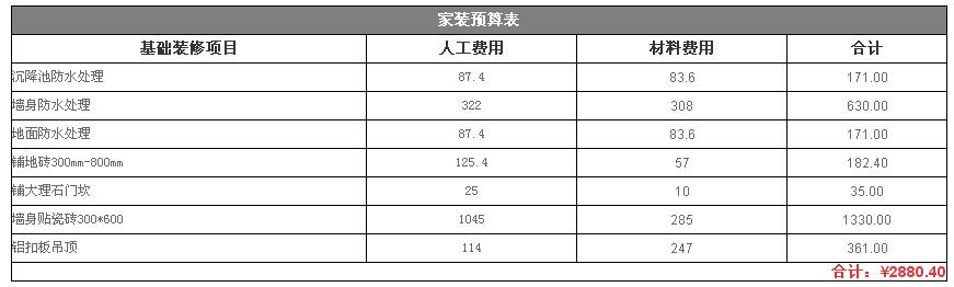 以上是小編為您介紹的衛生間設計裝修經費預算表,希望對您有所幫助。