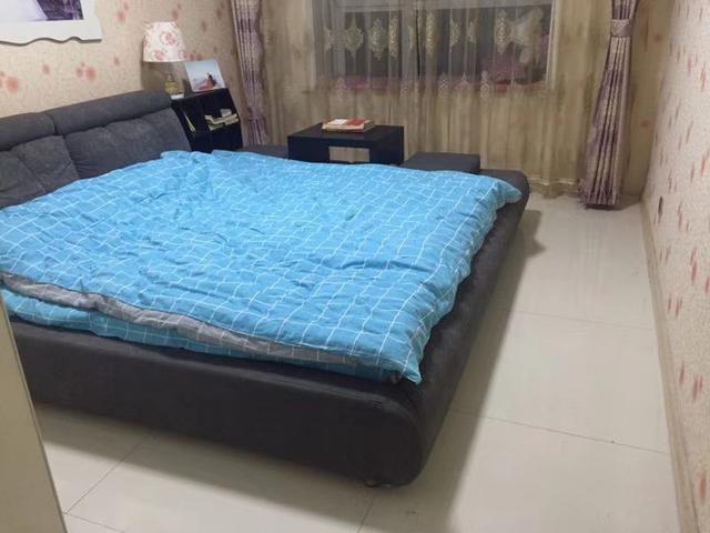 這是主臥室的效果,主臥室的床買(mǎi)的是深色的布藝床,這種床床頭比較小,睡著也比較舒服,以前的床頭非常的高,也比較大,睡著有點(diǎn)壓抑的感覺(jué),很不舒服。