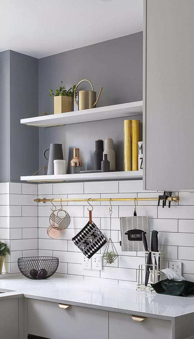 廚房我也是特別滿意的,用了復古的半墻設計,下部分用白色小長方形瓷磚拼接,很有層次感,沒想到這個充滿煙火氣息的地方也可以搞得這么文藝。