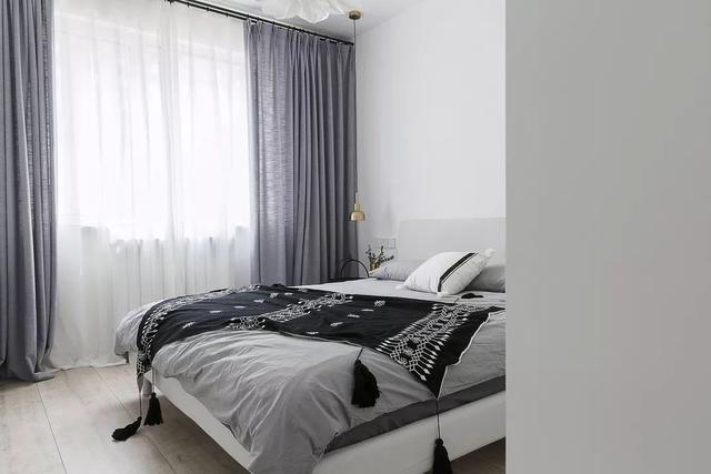 臥室用了雙層的窗簾,白色和灰色的搭配,看著舒適又大氣。
