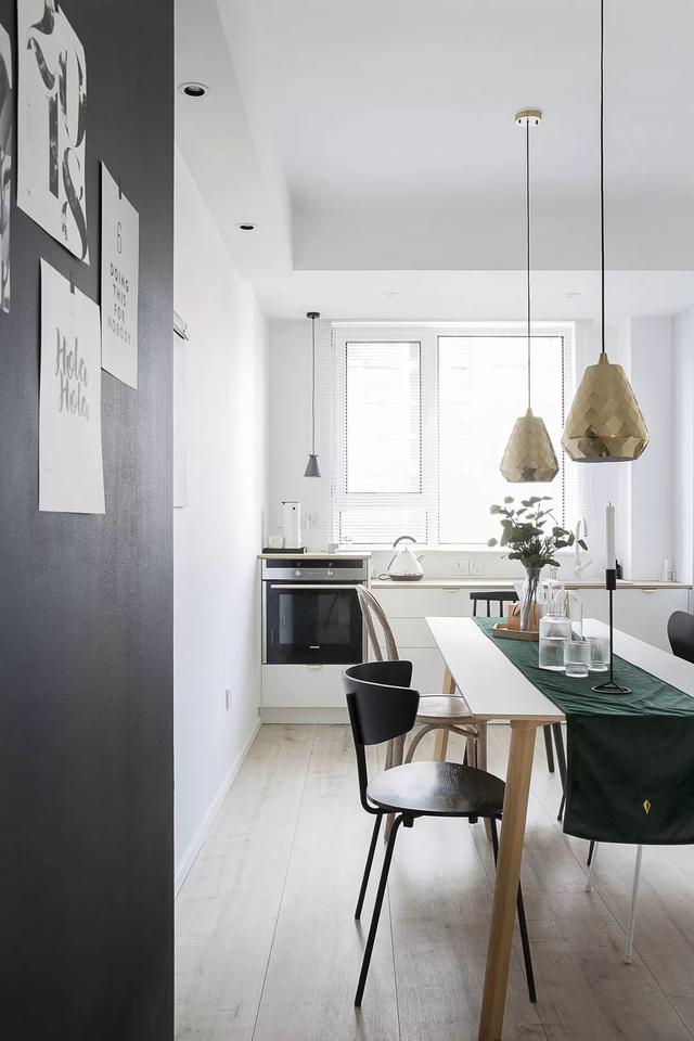 餐廳旁邊做了一面黑板墻,平時留留言,涂涂畫畫的,特別實用。