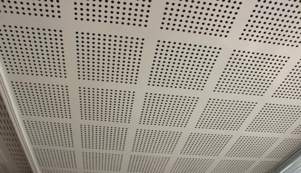 穿孔吸音板依靠優質膠粘劑與鋁蜂窩芯直接粘接成鋁蜂窩夾層結構,蜂窩芯與面板及背板間貼上一層吸音布。