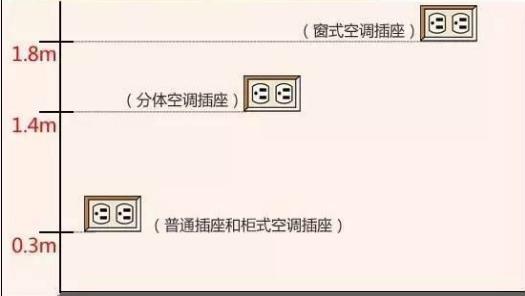 5、三種空調插座的高度都有區別,柜式至少30cm,分體1.4m左右,掛式的1.8m左右