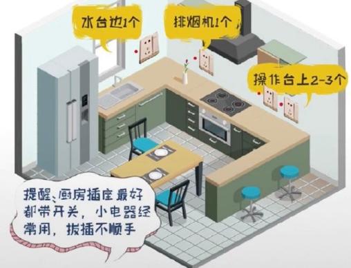 2、由于你洗菜、洗碗時水會濕,由于這時你也或得頻繁拔插小家電,那既為了免觸電有為了使用方便,你家的廚房插座都應盡量帶開關,可自動斷電!