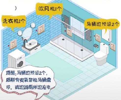 1、至少要5個插座,主要看你要不要裝智能馬桶,喜不喜歡邊如廁邊玩手機,這里至少要2個!