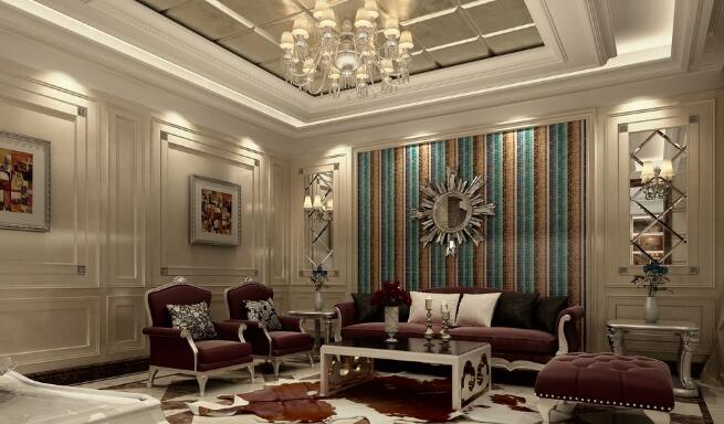 圓形吊頂是指形狀為圓形的吊頂,該種吊頂圍合感很強,在視覺上有收攏效果,適合面積過大的別墅客廳選用。
