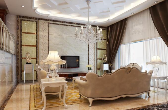 復合型吊頂是指由兩級以上吊頂復合而成的吊頂,該種吊頂層次感強,在視覺上有延伸空間的效果,適合層高不夠高的別墅客廳選用。