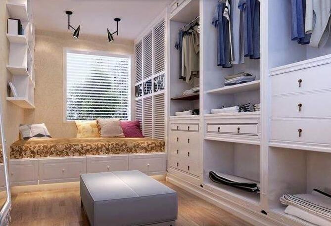 歐式衣帽間的面積應在4㎡以上,要保證給主人充裕活動的空間。衣帽間內部還需再根據衣物的品類分區,一般分掛放區、疊放區、內衣區、鞋襪區和被褥區。