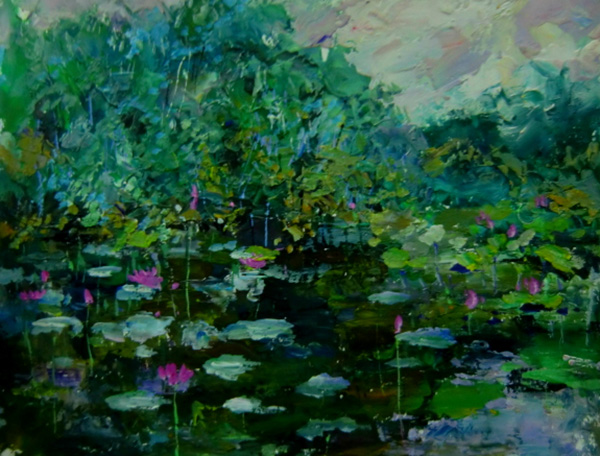 它可以一層層反復砌,畫出厚重的感覺;也可加入粉料及適量的水,用類似水粉的畫法覆蓋重疊,畫面層次豐富而明朗;如在顏料中加入大量的水分可以出水彩、工筆畫的效果,一層層烘染,推暈,透疊,效果純凈透明。由于丙烯顏料的主要調劑含水量很大,因此在容易吸水的粗糙底面上作畫更為適宜,如紙板、棉布、木板、纖維板、水泥墻面、麻毛質地的金屬面、石壁等。作丙烯畫可以用一般的油畫筆、畫刀、中國畫筆、水彩畫筆、板刷、海綿、絲瓜絡等。調色盤和筆洗多用不吸水的陶瓷、玻璃、琺瑯質地的容器,以防清洗不凈。丙烯顏料在水分揮發后即干透,因此作畫時對程序要心中有數,以使筆觸銜接自然,達到預想效果。