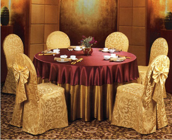 這種是屬于比較常見的酒店椅套種類,因其自身化纖與其它棉毛、絲、麻等天然纖維的混合,在干、濕情況下彈性和耐磨性都較好,尺寸穩定,縮水率小,具有挺拔、不易皺折、易洗、快干的特點,所以這類材質的酒店椅套很受酒店歡迎。