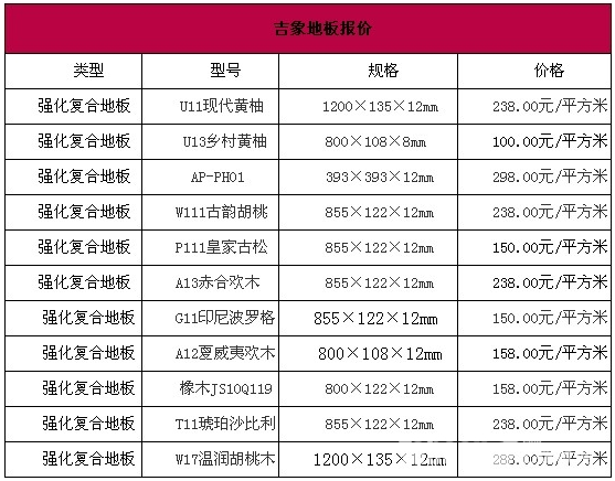 吉象品牌的地板產(chǎn)品主要包括高品質(zhì)的刨花板、中高密度纖維板、裝飾板和強(qiáng)化木地板等,涵蓋家具、櫥柜、門、包裝、裝飾建材、工藝品、電子線路墊板等多個木制品領(lǐng)域,吉象已經(jīng)成為各行業(yè)知名品牌的首選原材料品牌,是全友家私、掌上明珠家具、歐派櫥柜、宜家家居等知名品牌的板材供應(yīng)商。