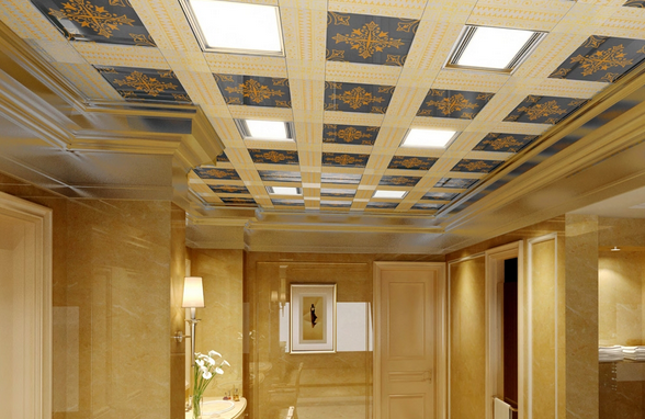 烤---借助現代工業,財喲干現代化的無塵恒溫烤房,使藝術天花在穩定、潔凈的環境中完成最后的“烤”工藝,烤漆表面持久光潔如新。