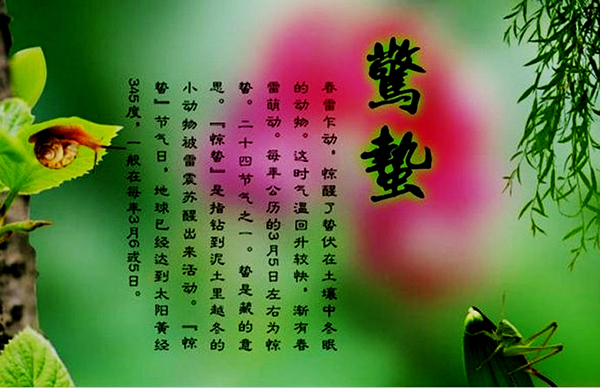《月令七十二候集解》中說:“二月節,萬物出乎震,震為雷,故曰驚蟄。是蟄蟲驚而出走矣。”