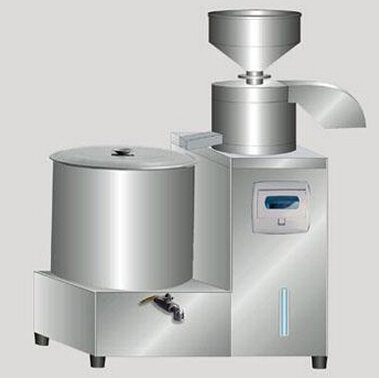 3、磨漿:啟動磨漿機,打開水龍頭,將浸泡好的大豆加入料斗中,(經驗數據表明每公斤干大豆,浸泡好為2公斤左右,操作時加入2.5公斤左右水,稱渣重為1.3公斤左右,則豆漿濃度、出渣率、小時產量、分離度等指標為最佳值)。為了進一步提高豆渣的利用率,可將豆渣加水調至粥樣倒入料斗重復加工。工作完畢后用水將料斗濾網上剩余的渣沖洗干凈并甩干。磨漿過程,切勿漿手伸進豆渣出口,以免手指被打斷。