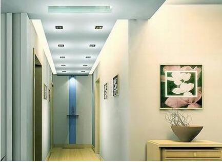 小戶型的過道吊頂不適合做的太過于花哨,若有橫梁,可以考慮做假吊頂來化解,否則會讓居住者心理出現巨大壓力。假天吊頂很多種,可以在靠墻的位置設置圍邊的模板、設置各類燈管、在下方安裝射燈等,還可以做壓低的木板裝飾。