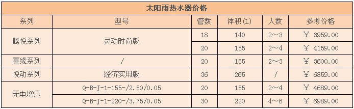 熱水器具有光電雙動(dòng)力,采用電輔助加熱,解決連續(xù)陰雨天溫水供應(yīng)不足問(wèn)題,保溫性能好,基礎(chǔ)水溫高,節(jié)能更方便,確保全天候供水。