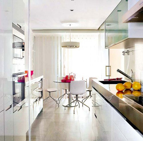 廚房里選用的建材和家具需以防滑、防水和方便清潔為功能要點,簡易用上具有防滑耐磨屬性的瓷磚,不可鋪設實木地板。