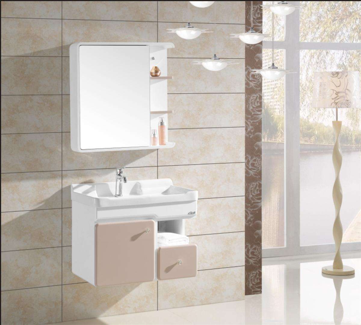 木質的浴室柜吸水容易變形,所以它對周圍環境有非常苛刻的要求,而普通家庭的浴室一般只有幾平方米的空間,不容易做到干濕分區。在選購浴室柜時,可以選擇采用防火板、耐磨板、高分子聚合物等復合型板材作為柜面材料的產品,不但具有很好的防潮性,還能模擬出實木的顏色。