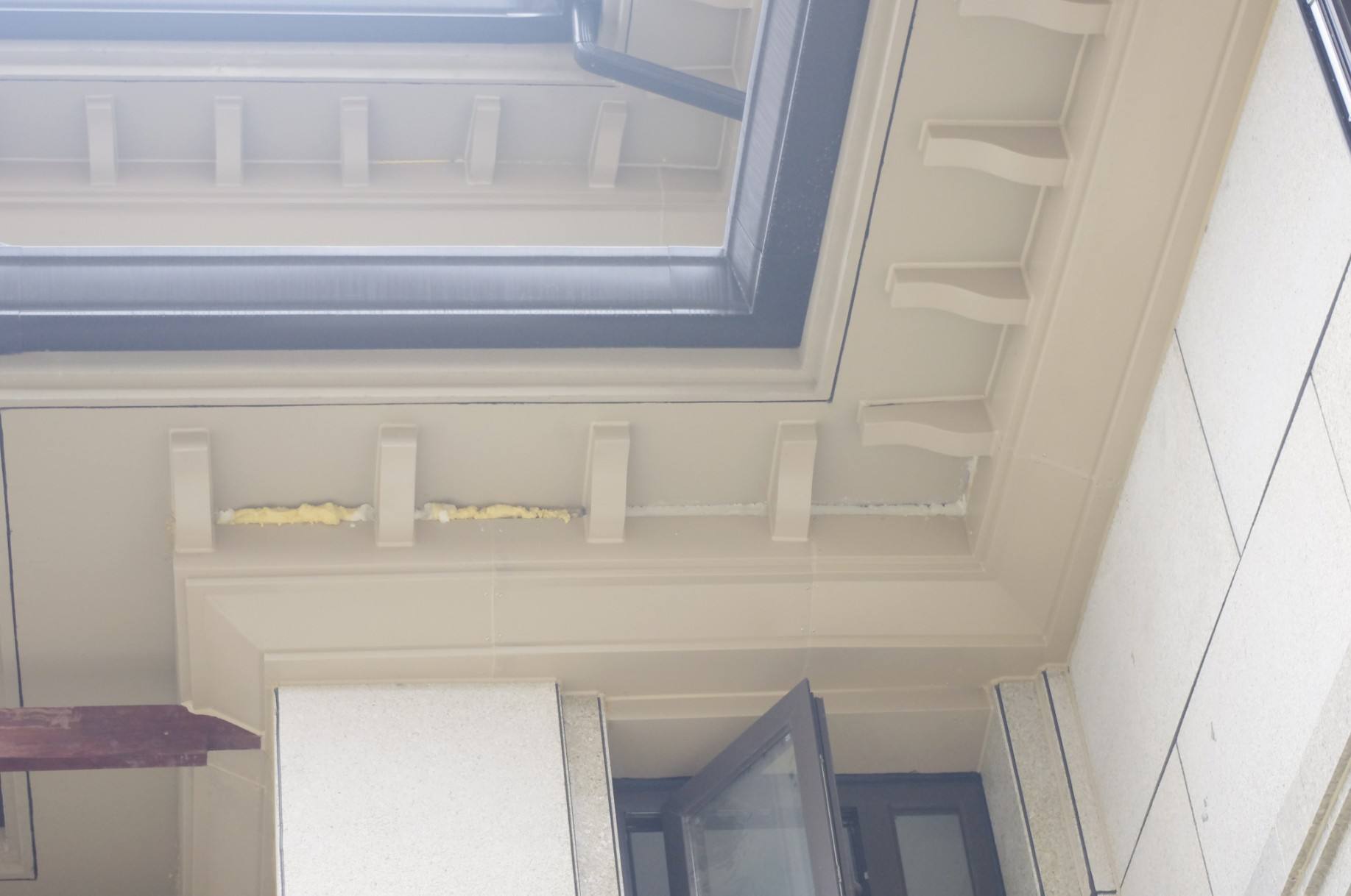 2、在每一個墻角安裝的地方之前,必須將陰角線里的雕花滑塊裁出一個完整的花,刨去滑邊,以便打釘處黏上蓋合。