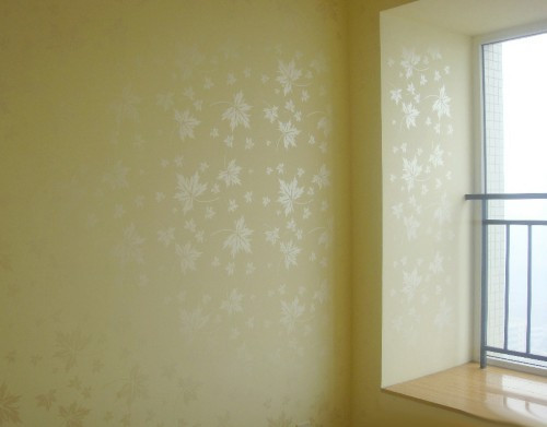 3、在乳膠漆表面創意:乳膠漆施工完成后,在漆膜表面再用繪制一些花紋,可以用手繪,也可以用一些模具來拓印,還可以用貼紙來造型,方法非常多。
