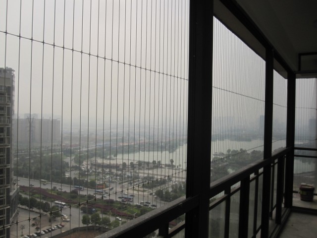 2、安全。每根鋼絲可以承載85-120KG以上的重力,鋼絲間隔小(5公分間隔)可以有效的保護小孩的安全,防止小孩在攀爬時發生的墜樓事故。