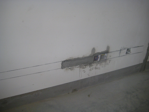 泥工之所以也被稱之為隱蔽工程,因為開槽鋪管后,需要泥工進行水泥封閉,雖然看似比較簡單,但其實封槽是否平整,會影響到今后的施工。我們注意到師傅做好的線管水泥封閉,整個面非常平整。