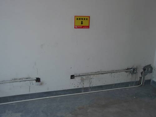 強電和弱電分開走,壁掛電視后面的TV線還有專門的管道向上接通,很正規(guī),而且避免干擾。